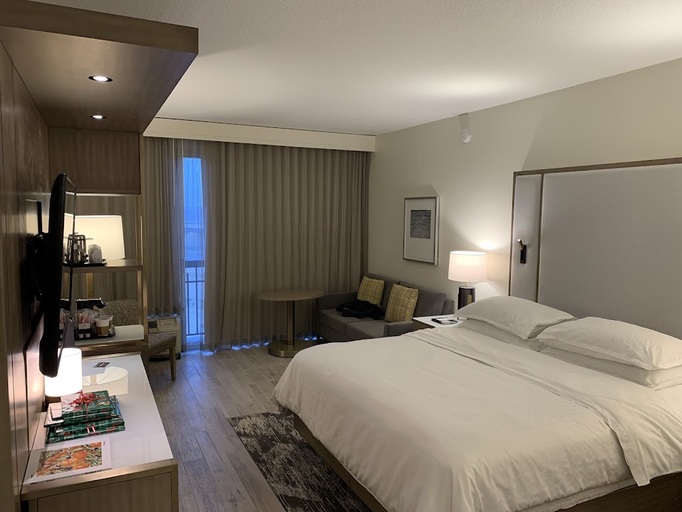The employees are very nice and welcoming. Great location and comfy bed. The TV setup and remote are a little dated so you'll want to pack something HDMI capable (Fire stick, Roku or a cable for your laptop) to watch anything other than Netflix. The soft drinks (non alcoholic) selection is somewhat...